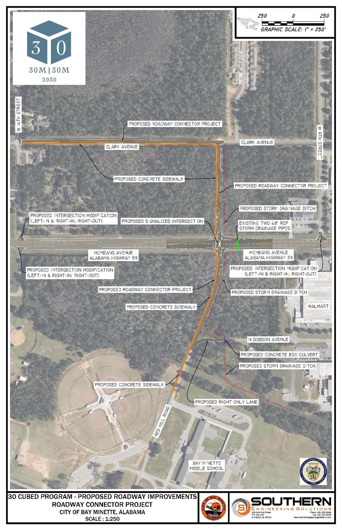 The Baldwin County Commission and the City of Bay Minette are pleased to announce that they have entered into an Intergovernmental Roadway Construction Agreement to construct roadway improvements connecting Red Hill Road and Clark Avenue to State Route 59.